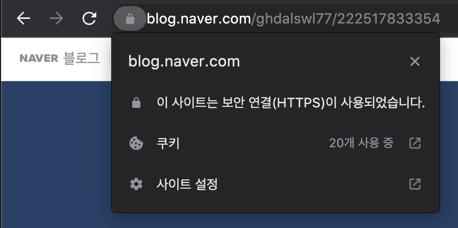 (쿠키를 확인하고 싶다면, 주소창 자물쇠 아이콘을 클릭해 보세요!)
