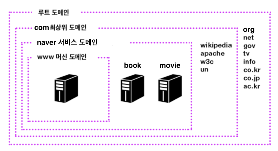 위 그림에서 www, book, movie 를 서브 도메인이라 부르고, 서버를 식별하기 위해 사용했습니다.