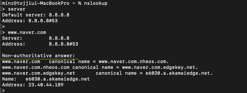권한없는 응답으로 네이버의 웹서버 IP를 알려준다. 아래가 이 과정을 자세히 설명합니다.