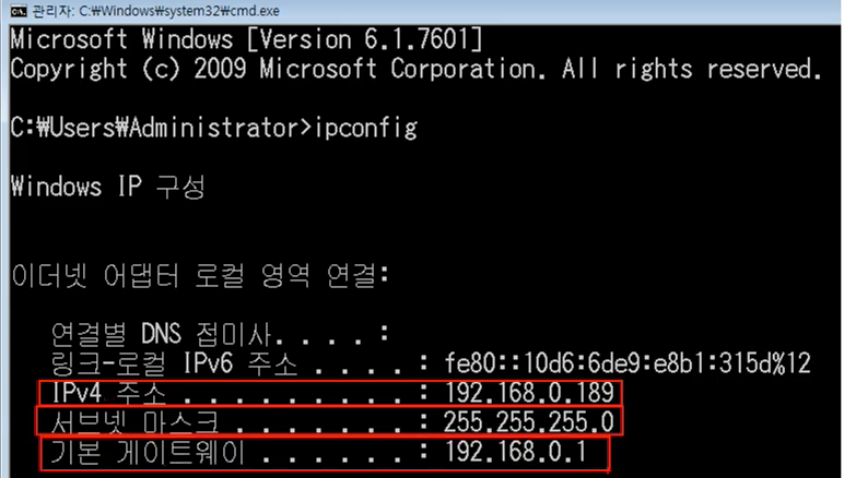 여기서부터 하나의 네트워크 대역에서 속해있는 PC를 구분.