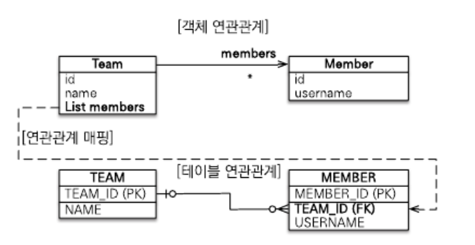 일대다 단방향 관계는 하나의 팀이 회원들을 참조하지만 반대로 회원은 팀을 참조하지 않는 형태다.