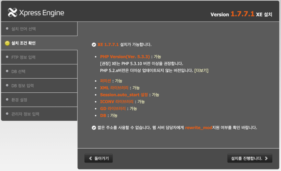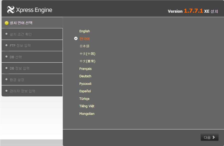 그리고 웹 브라우저로 접속해 설치를 진행한다.