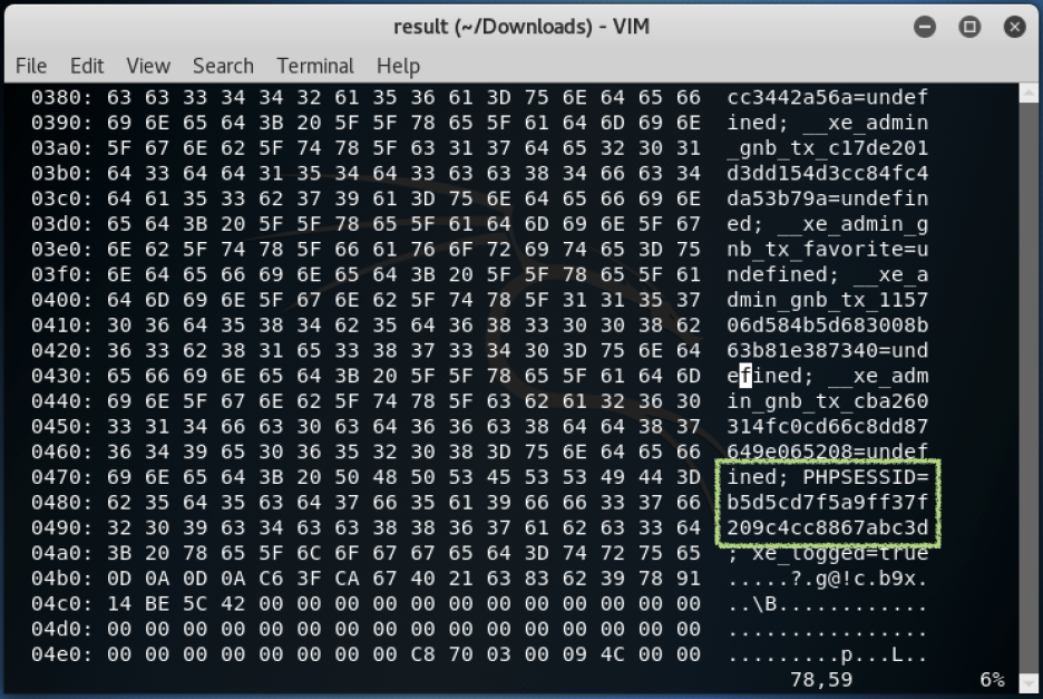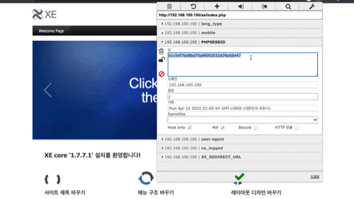 해커의 세션 아이디를 관리자 세션 아이디로 바꾸고 저장하는 중.