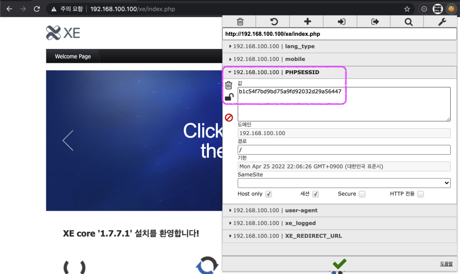 해커쪽에서 edit this cookie 확장 프로그램을 다운 받는다.