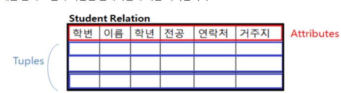 속성 : 개체의 특성이나 상태를 기술하는 것(이름, 나이, 주민번호 등..)