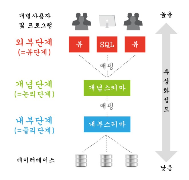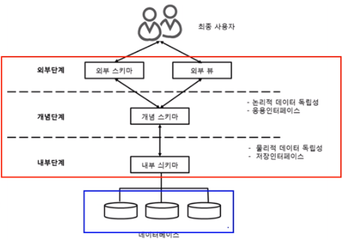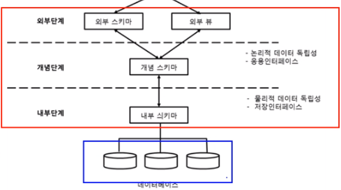 이렇게 3단계 계층 구조로 나눠진 데이터베이스는 데이터의 독립성을 가진다.