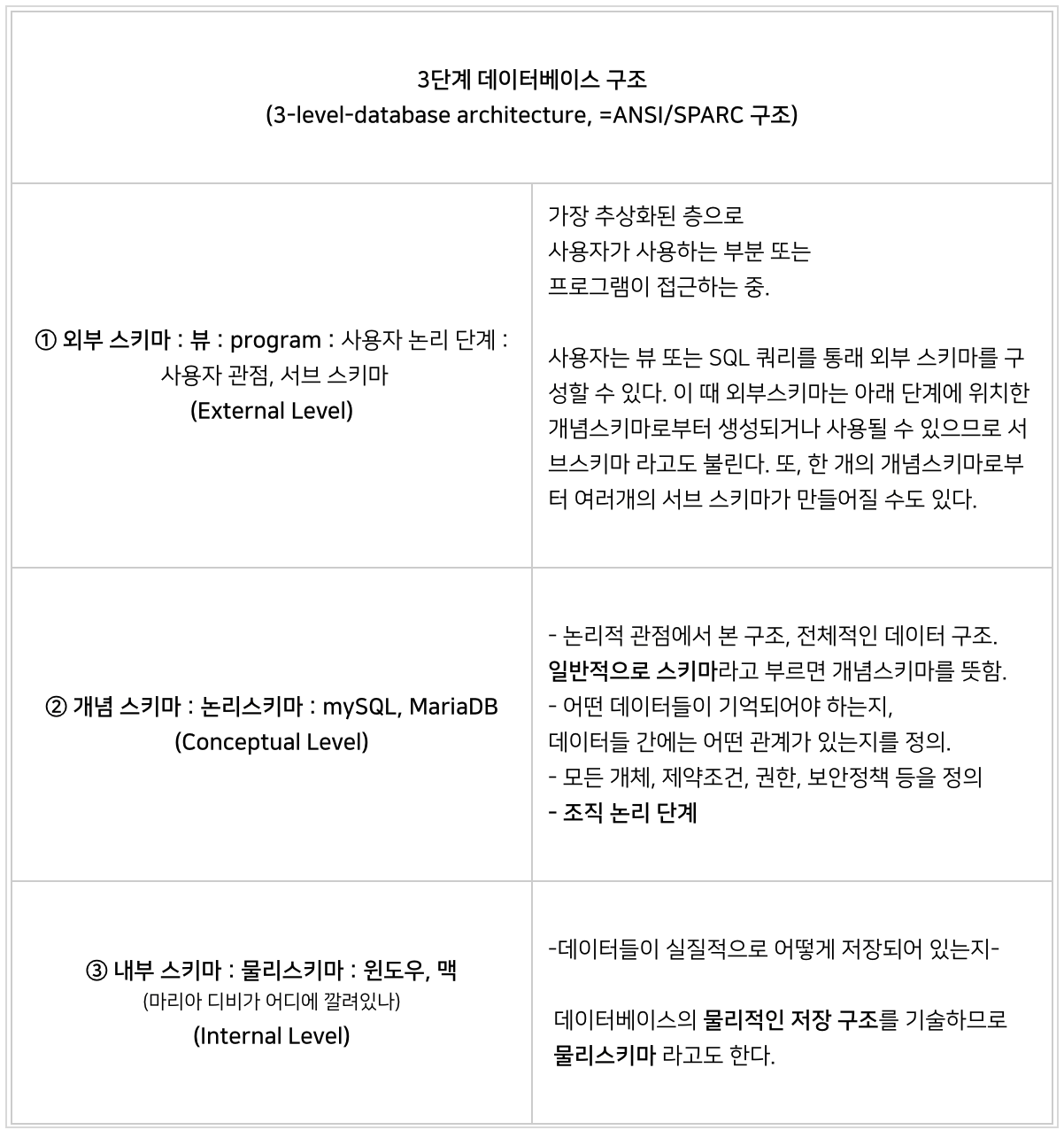 이 구조는 이름대로 데이터 베이스를 3단계로 나누고,