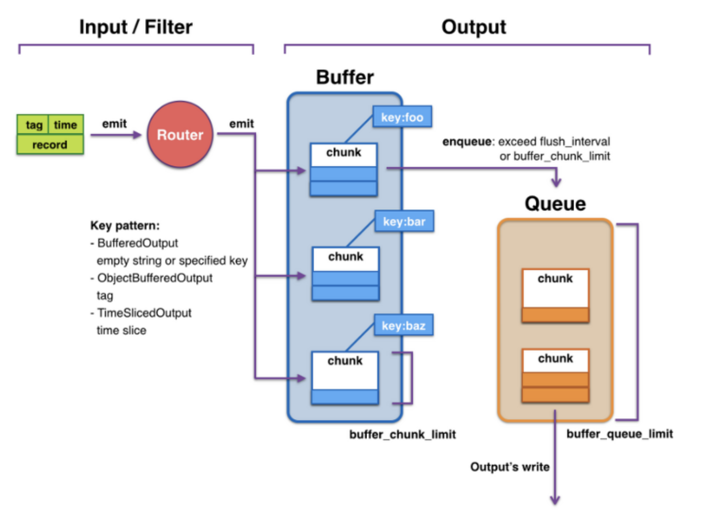 output (match) 내부에서 사용하며 input에서 들어온 이벤트가 설정한 버퍼 크기에 도달한 경우 output으로 내보내도록 설정할 수 있음.