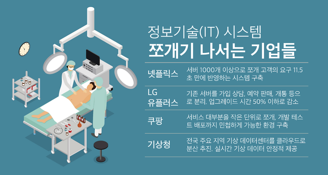 복잡한 시스템을 여러 개의 자율적인 조직으로 분화하여, 각종 업데이트 요구에 빠르게 부분마취로 대응할 수 있게 되는 것이죠.