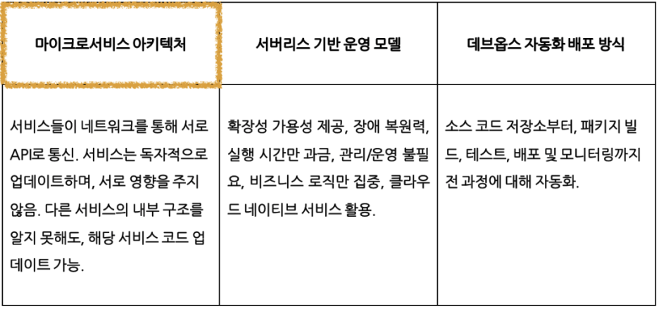 아주 작은 단위로 동작하는 서비스가 구동되도록, 시스템 및 소프트웨어의 구성과 구성요소 간의 관계를 정의한 아키텍처인 것이죠.