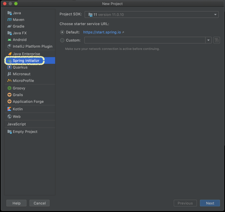 이전 글에서 프로젝트를 생성하면서 프로젝트의 Type을 그레이들(Gradle)로 선택했다.