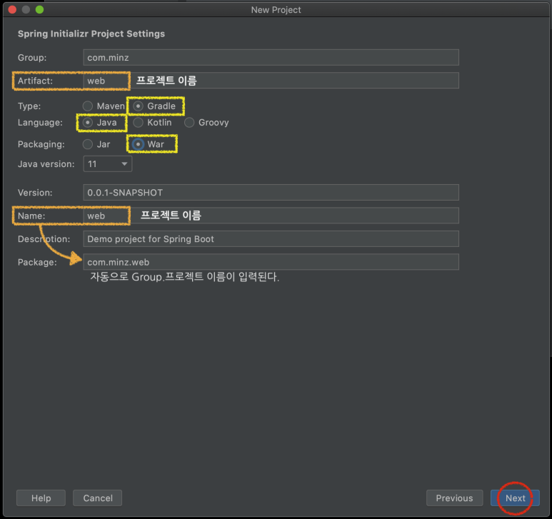 스프링부트 war 프로젝트 생성시,