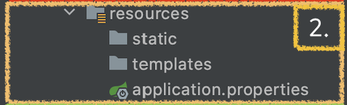 templates 폴더, static 폴더, application.properties 파일이 기본적으로 생성된다.