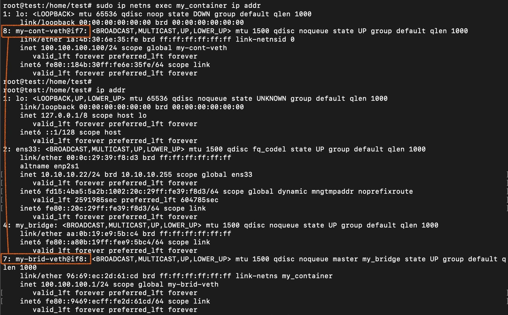 # 3. my-cont-veth 를 my_container 네임스페이스로 이동