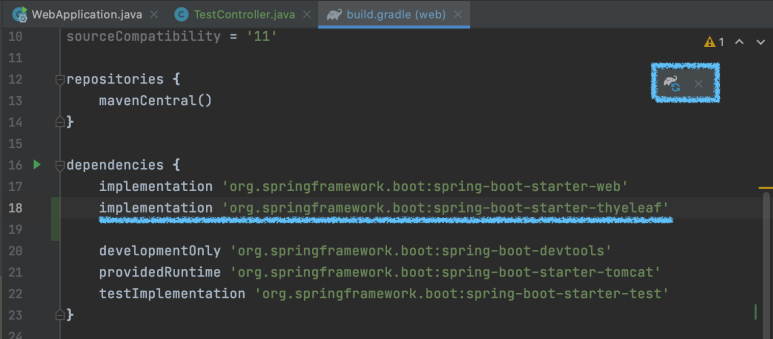 implementation 'org.springframework.boot:spring-boot-starter-thymeleaf'