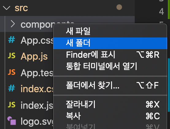 우선 여기 src에 components 라는 이름의 폴더를 생성한다.