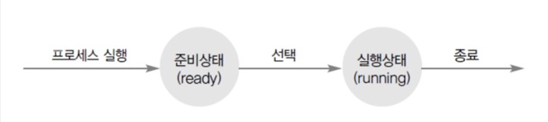선택되면 -> 실행 상태로 들어가 작업을 실행하고 -> 종료된다.