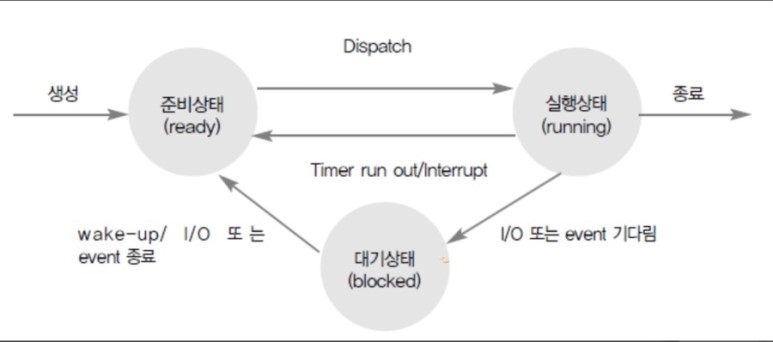우선 유니 프로그래밍에서 프로세스가 실행되면, 데이터는 준비 상태에 있다가 ->