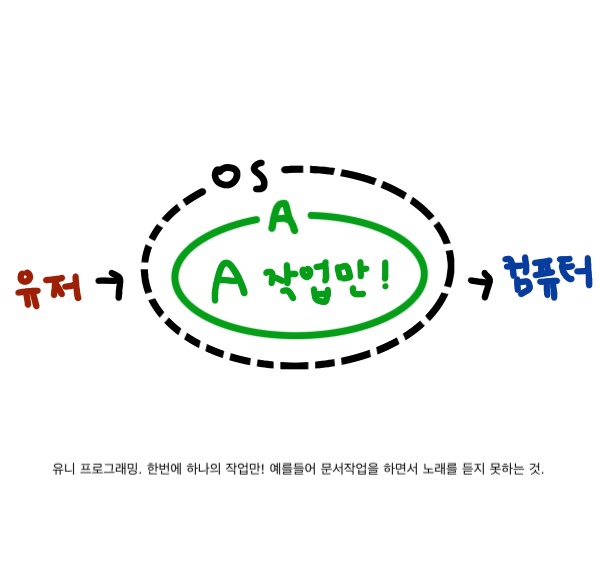 멀티는 동시에 두 가지 이상의 작업을 처리하는 OS방식인데,