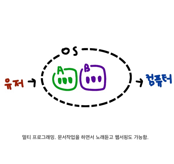 여기에 멀티 프로그래밍은 두가지 이상의 작업을 처리해야 해서,