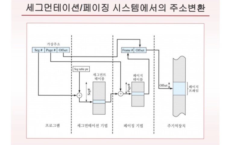 이때 각 프로세스 마다 페이지가 주기억장치의 어느 프레임에 저장되는지를 나타내는 테이블을 운영체제가 관리하는데,