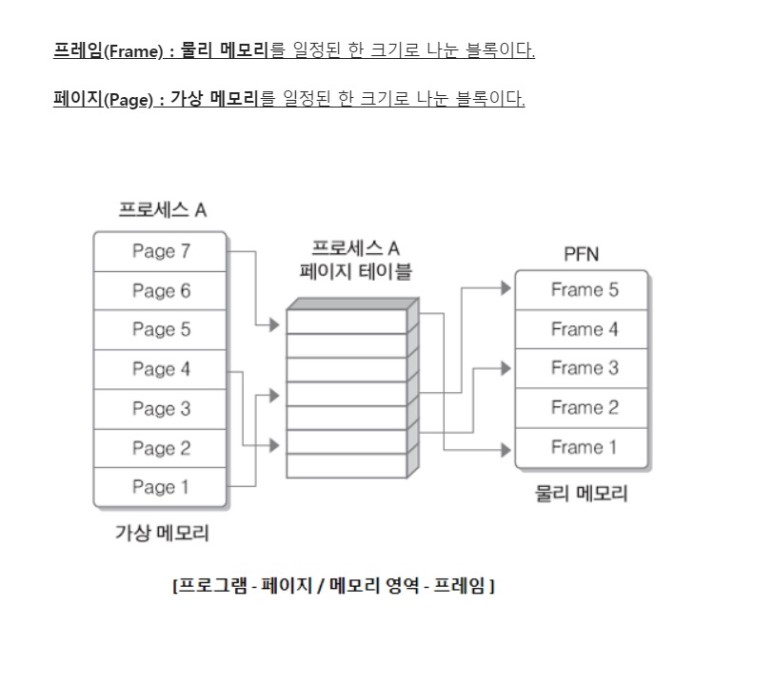 그리고 프로세스를 실행할 때 프로세스를 페이지로 나누어 프레임에 할당하는 방법을 이용하기 때문에,