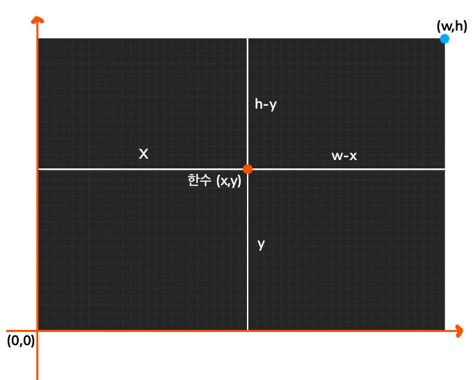 한수가 직사각형에서 탈출할 수 있는 최단거리를 구하는 문제다.