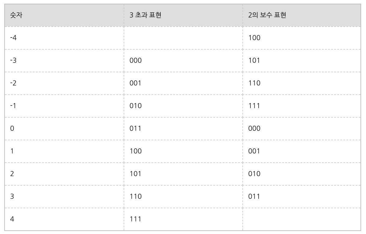 일반적으로 컴퓨터에서는 정수 표현에 초과 표기법(excess notation)을,
