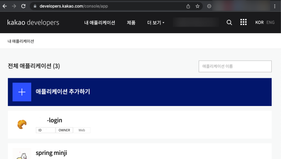2. 카카오 개발자 사이트 애플리케이션 추가