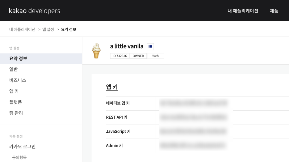 다음 챕터에서 REST API 키를 사용할 것이다. 복붙 해두거나 창을 열어두면 편리하다!