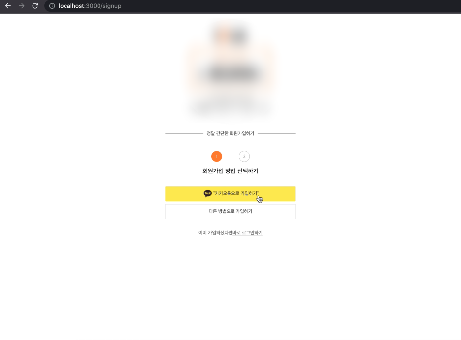 (2) 카카오 회원가입으로 가입한 이력 있는 카카오톡 아이디로 로그인 시도.