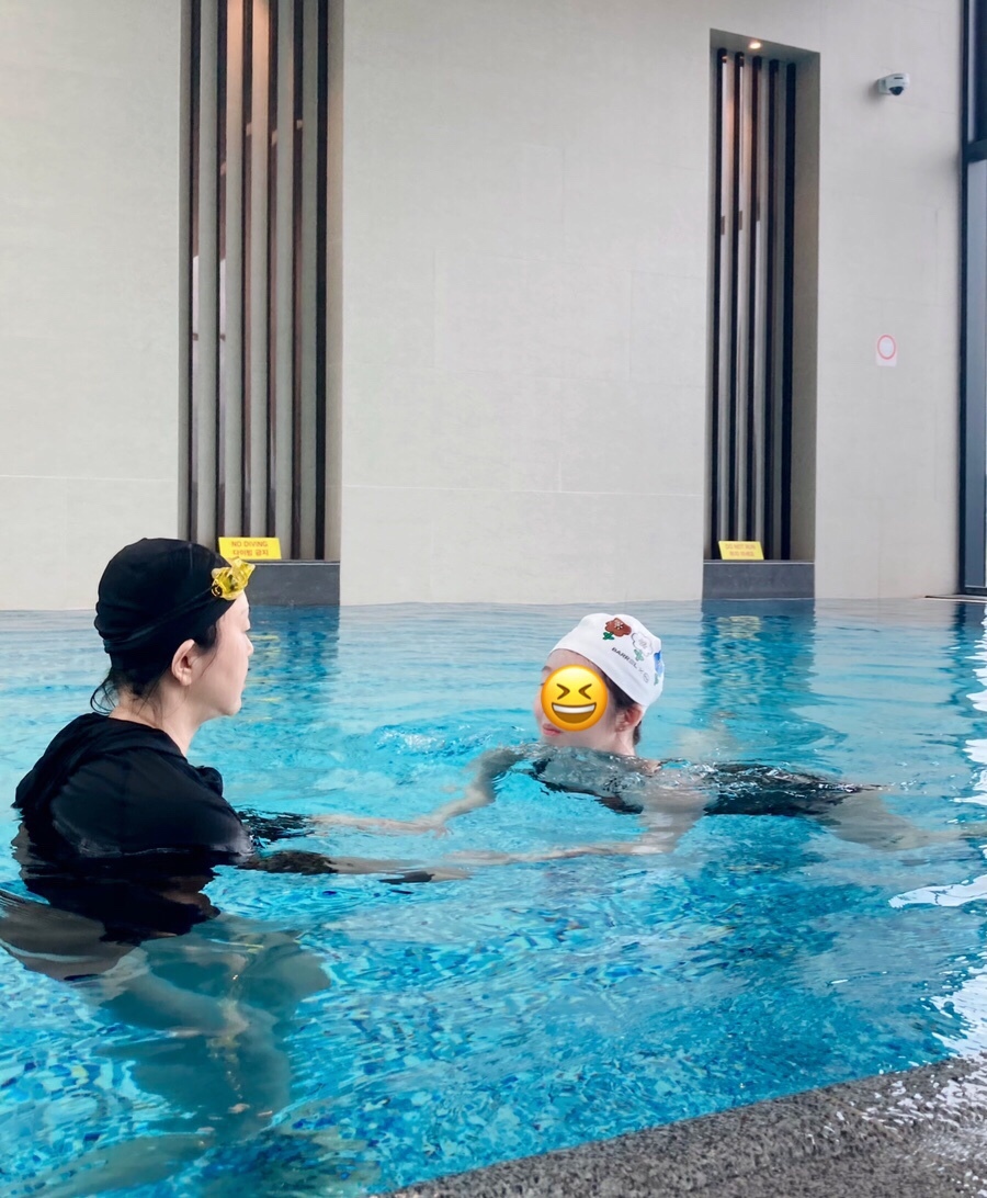 엄마한테 수영을 배우는 동생..ㅋㅋ