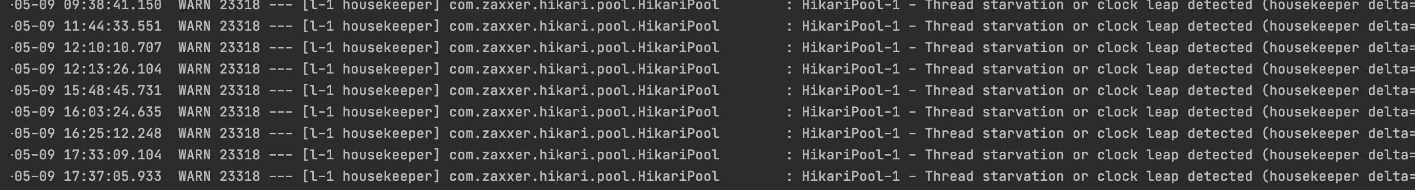 HikariPool-1 - Thread starvation or clock leap detected (housekeeper delta=